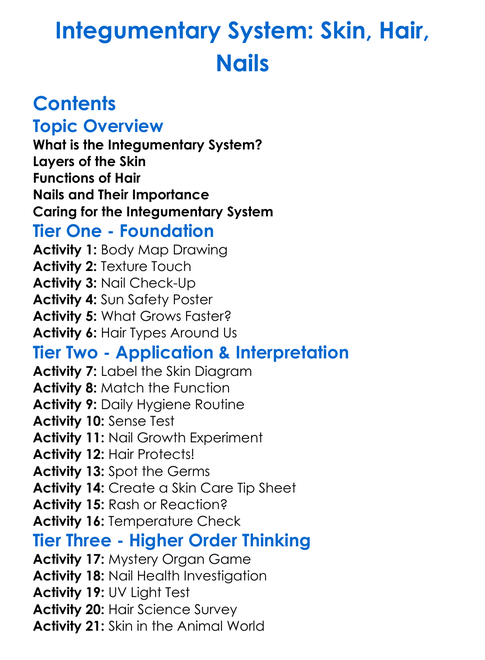 Integumentary System Skin Hair Nails Worksheet Activity Booklet