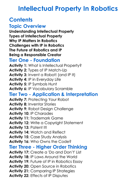 Intellectual Property In Robotics Worksheet Activity Booklet