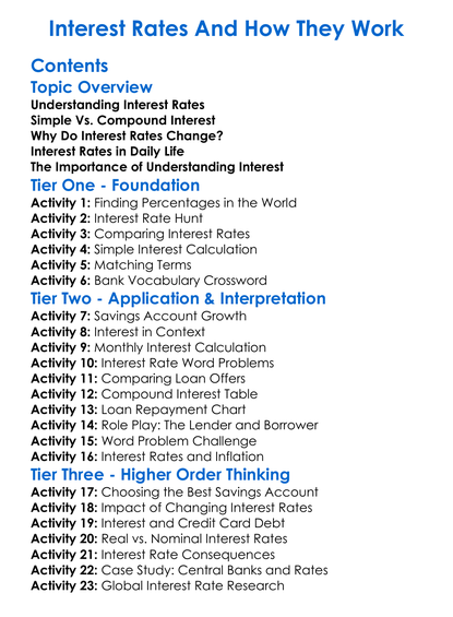 Interest Rates And How They Work Worksheet Activity Booklet