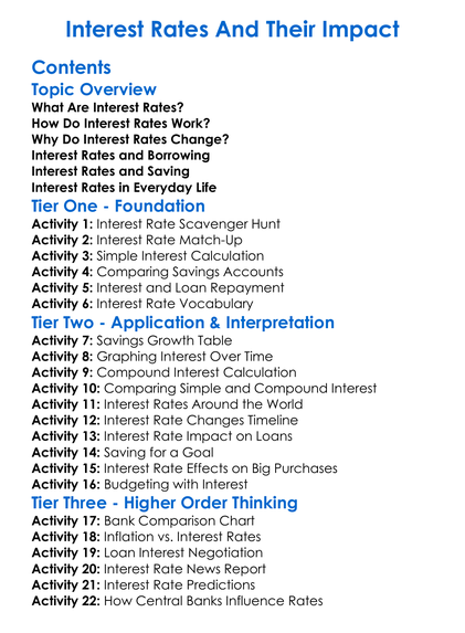 Interest Rates And Their Impact Worksheet Activity Booklet