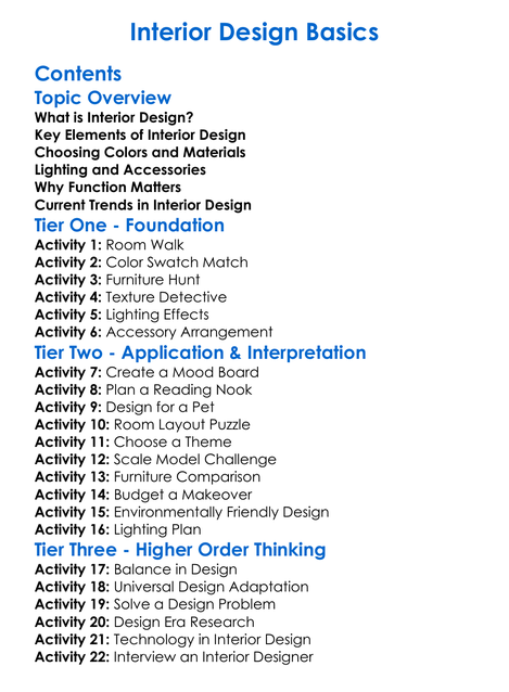 Interior Design Basics Worksheet Activity Booklet