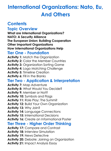 International Organizations Nato Eu And Others Worksheet Activity Booklet