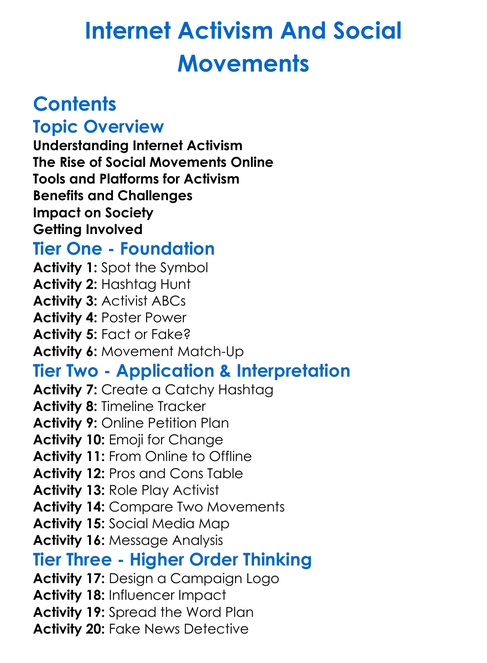 Internet Activism And Social Movements Worksheet Activity Booklet