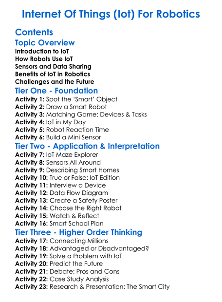 Internet Of Things Iot For Robotics Worksheet Activity Booklet
