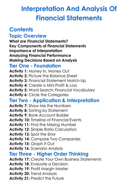 Interpretation And Analysis Of Financial Statements Worksheet Activity Booklet
