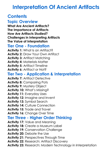 Interpretation Of Ancient Artifacts Worksheet Activity Booklet