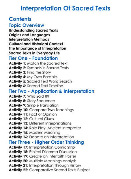 Interpretation Of Sacred Texts Worksheet Activity Booklet