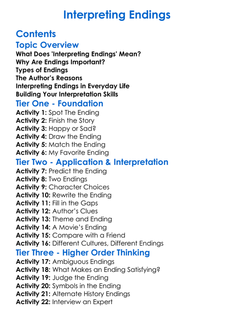 Interpreting Endings Worksheet Activity Booklet