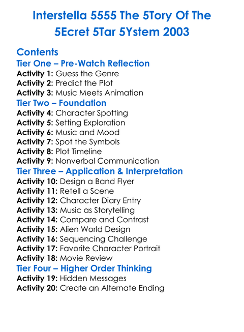 Interstella 5555 The 5Tory Of The 5Ecret 5Tar 5Ystem 2003 Worksheet Activity Booklet