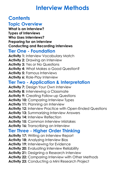 Interview Methods Worksheet Activity Booklet