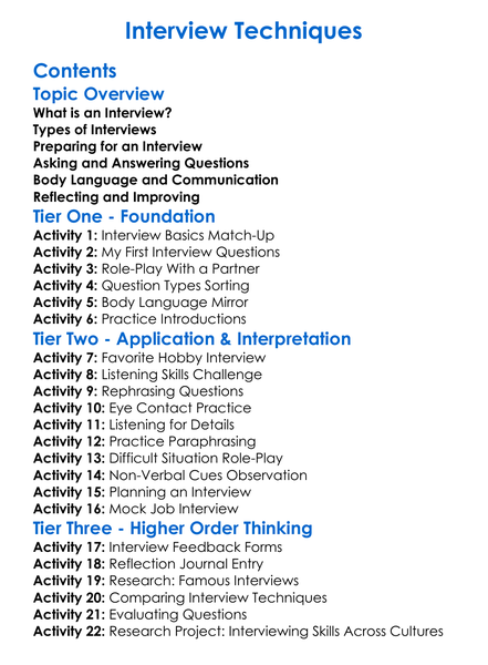Interview Techniques Worksheet Activity Booklet