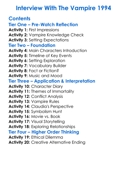 Interview With The Vampire 1994 Worksheet Activity Booklet