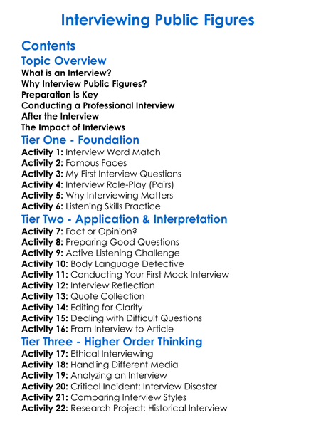 Interviewing Public Figures Worksheet Activity Booklet
