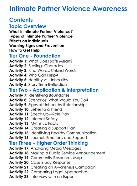 Intimate Partner Violence Awareness Worksheet Activity Booklet