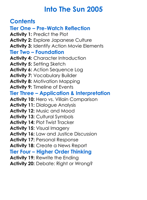 Into The Sun 2005 Worksheet Activity Booklet