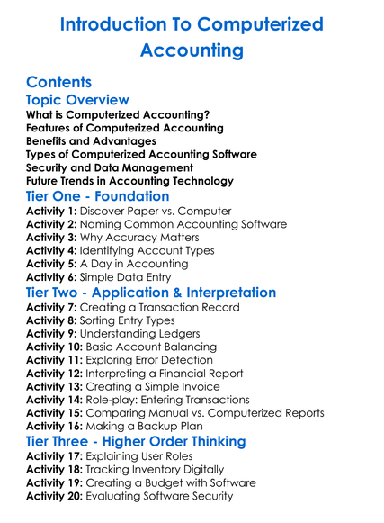 Introduction To Computerized Accounting Worksheet Activity Booklet