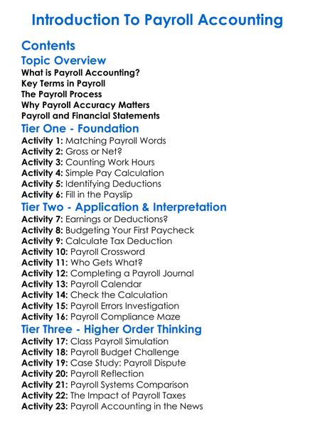 Introduction To Payroll Accounting Worksheet Activity Booklet