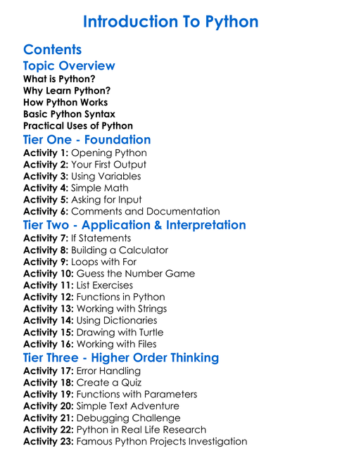 Introduction To Python Worksheet Activity Booklet