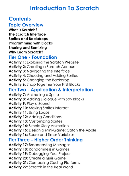 Introduction To Scratch Worksheet Activity Booklet