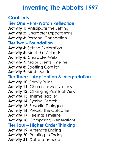 Inventing The Abbotts 1997 Worksheet Activity Booklet