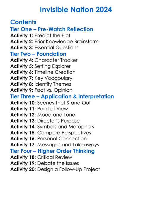 Invisible Nation 2024 Worksheet Activity Booklet