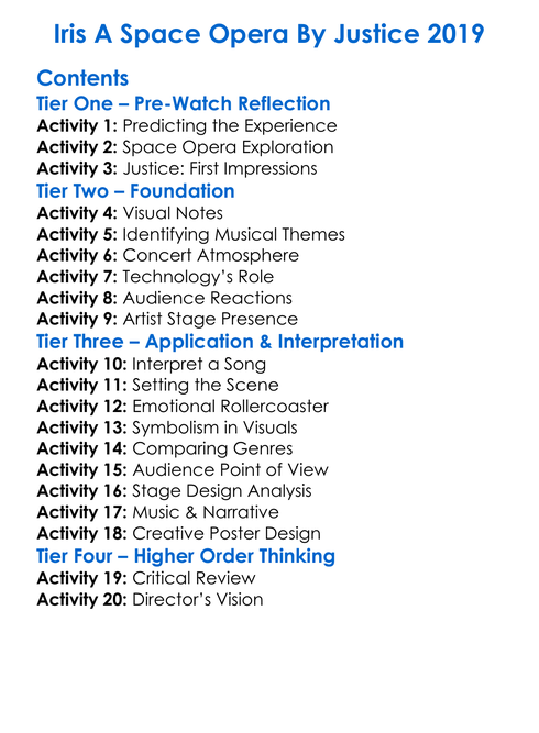 Iris A Space Opera By Justice 2019 Worksheet Activity Booklet