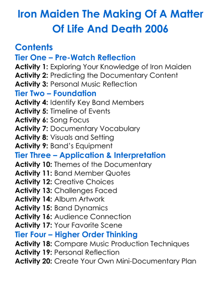 Iron Maiden The Making Of A Matter Of Life And Death 2006 Worksheet Activity Booklet