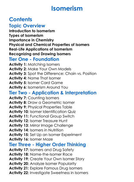 Isomerism Worksheet Activity Booklet