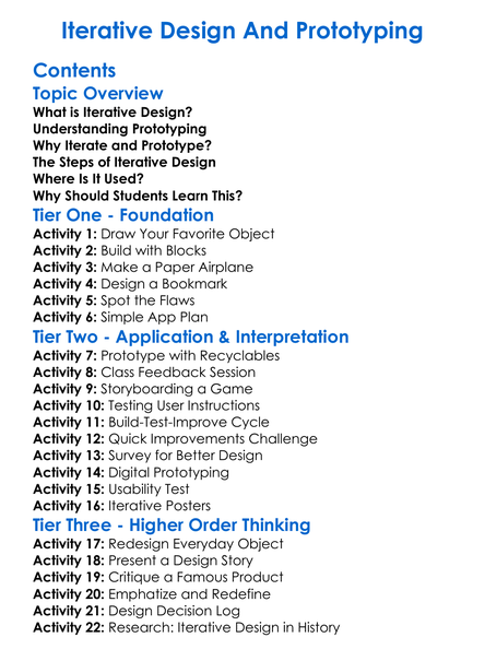 Iterative Design And Prototyping Worksheet Activity Booklet
