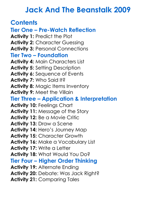 Jack And The Beanstalk 2009 Worksheet Activity Booklet