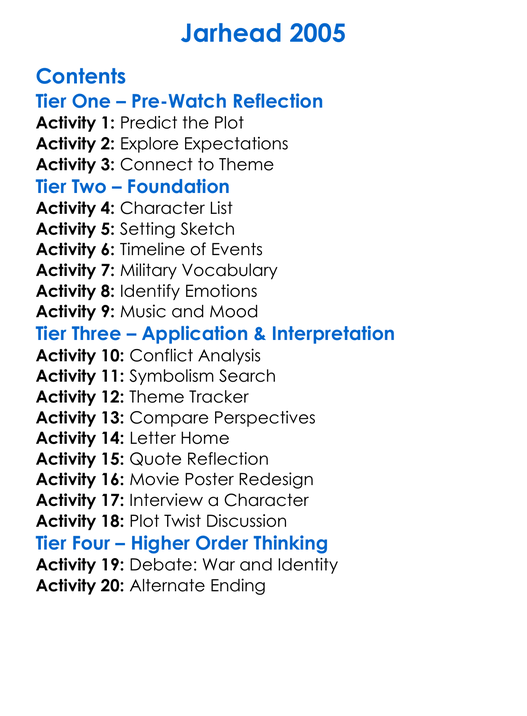 Jarhead 2005 Worksheet Activity Booklet
