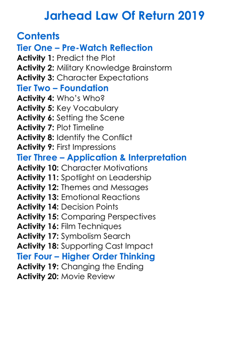 Jarhead Law Of Return 2019 Worksheet Activity Booklet