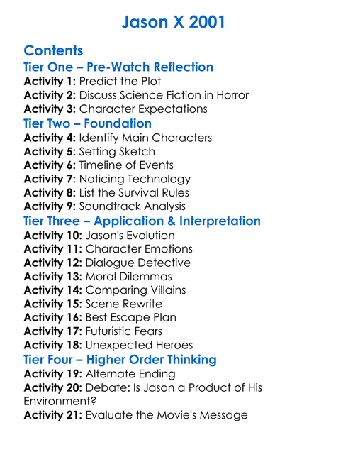 Jason X 2001 Worksheet Activity Booklet