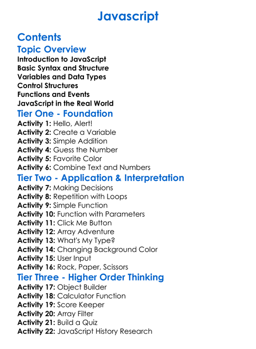Javascript Worksheet Activity Booklet