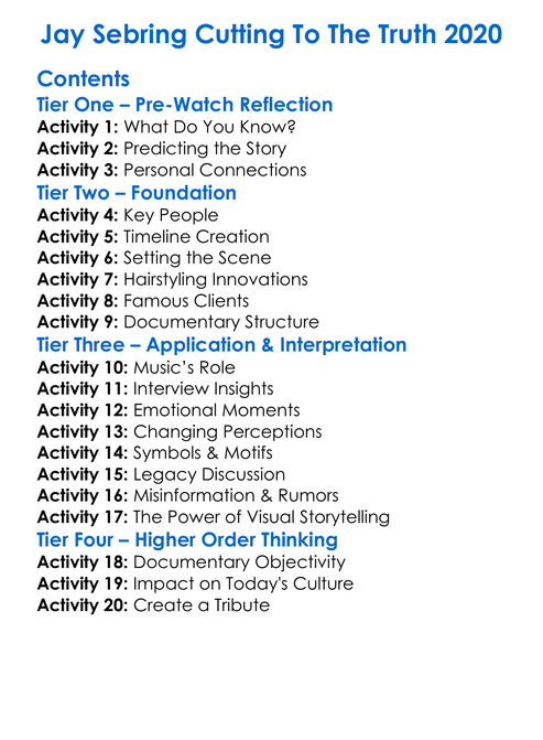 Jay Sebring Cutting To The Truth 2020 Worksheet Activity Booklet