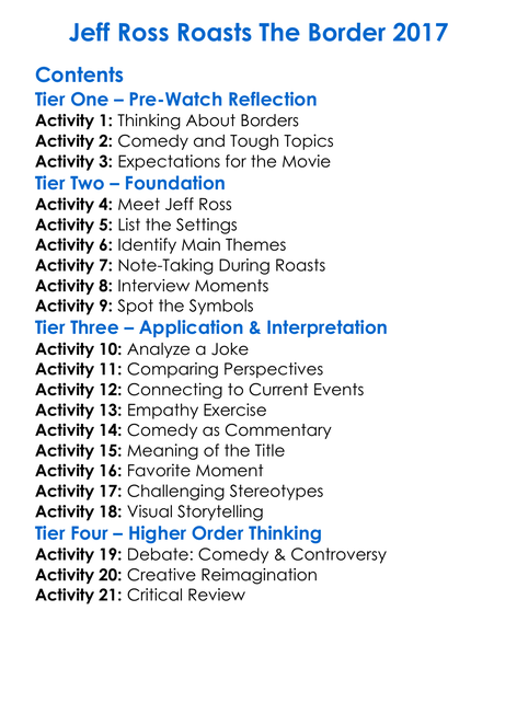Jeff Ross Roasts The Border 2017 Worksheet Activity Booklet