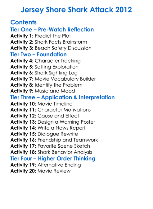 Jersey Shore Shark Attack 2012 Worksheet Activity Booklet