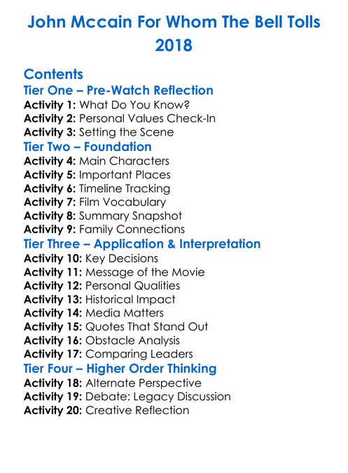 John Mccain For Whom The Bell Tolls 2018 Worksheet Activity Booklet