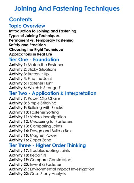 Joining And Fastening Techniques Worksheet Activity Booklet