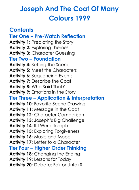 Joseph And The Coat Of Many Colours 1999 Worksheet Activity Booklet