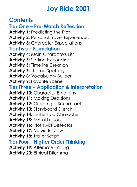 Joy Ride 2001 Worksheet Activity Booklet