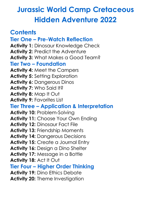 Jurassic World Camp Cretaceous Hidden Adventure 2022 Worksheet Activity Booklet