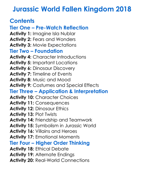 Jurassic World Fallen Kingdom 2018 Worksheet Activity Booklet
