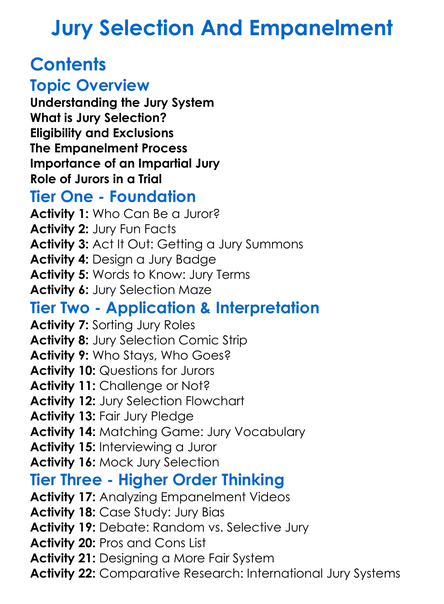 Jury Selection And Empanelment Worksheet Activity Booklet