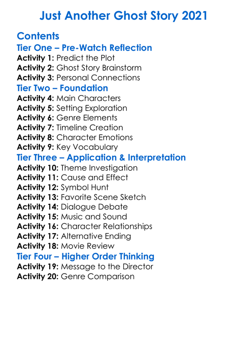Just Another Ghost Story 2021 Worksheet Activity Booklet