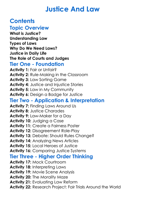 Justice And Law Worksheet Activity Booklet