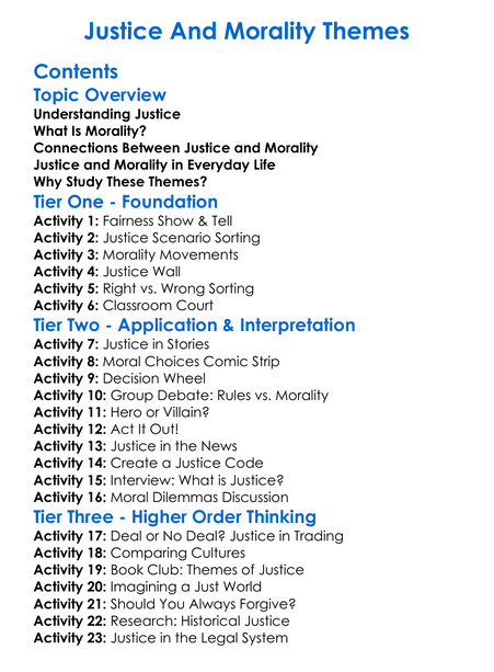 Justice And Morality Themes Worksheet Activity Booklet