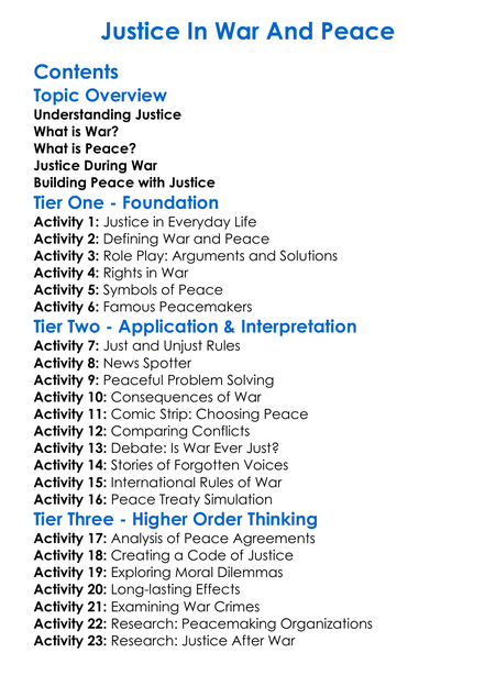 Justice In War And Peace Worksheet Activity Booklet
