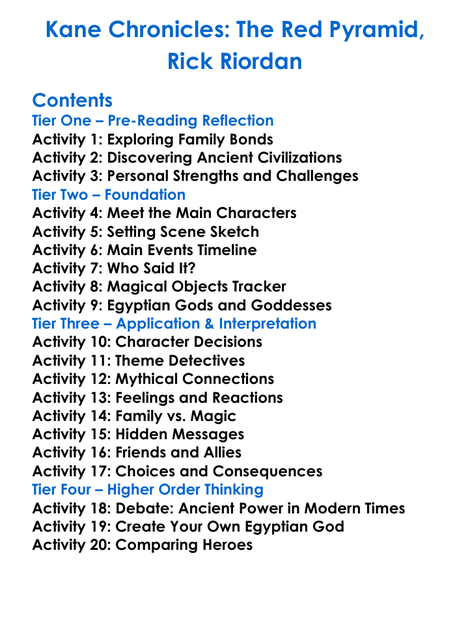 Kane Chronicles The Red Pyramid Rick Riordan Worksheet Activity Booklet