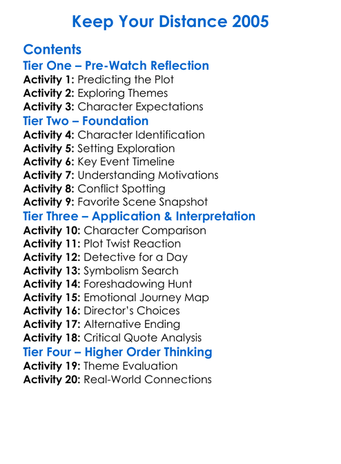 Keep Your Distance 2005 Worksheet Activity Booklet